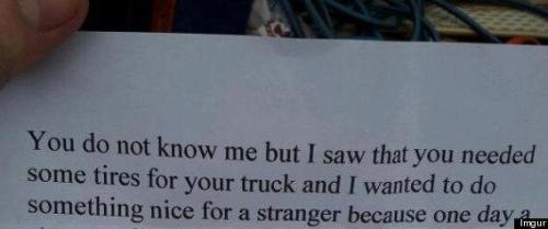 In the hubbub, the fact that the site is also a clearinghouse for small acts of random kindness has been overshadowed. In the midst of a dark news cycle, the story of a simple act– replacing a man’s worn tires–is a simple reminder of the power of unsolicited generosity.