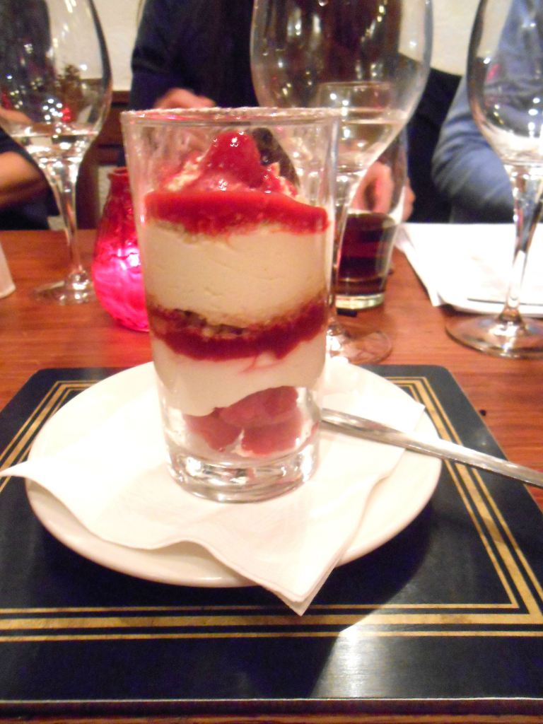 It is a mixture of whipped cream, whisky, honey and fresh raspberries, with toasted oatmeal soaked in whisky overnight. I didn’t taste much of the whisky though, the dessert was very sweet!