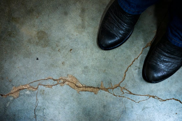 The Washington Post via Getty Images Gary Landra stands on a crack across his basement floor that he says was caused by an earthquake in Prague…