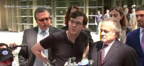 Shkreli shook his head in apparent disbelief as the first of three guilty verdicts was read. His father, who attended every day of the more than four-week trial, put his head in hands. Shkreli, who was acquitted on five other charges, faces up to 20 years in prison, though legal experts say he is likely to be sentenced to much less.