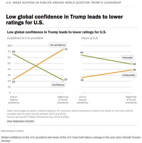 The United States has become less respected under Trump, polls suggest, and as the president disdainfully discards the nation’s mantle of global leadership, erstwhile close allies are relying less on America and instead are going their own way.