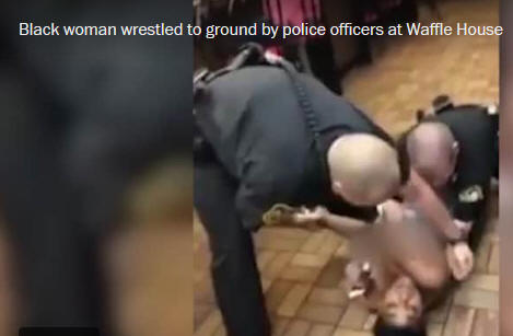 White police officers in Alabama wrestled a black woman to the ground in a Waffle House early Sunday, exposing her breasts during the struggle and prompting comparisons to the arrest of two black men at a Philadelphia Starbucks earlier this month.