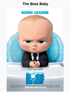 The Boss Baby is a 2017 American computer-animated comedy somewhat based on the 2010 picture book of the same name by Marla Frazee and produced by DreamWorks Animation. It’s directed by Tom McGrath and written by Michael McCullers. The plot features a baby who is a secret agent in the war for adult’s love between babies and puppies. I think this is a cute and worthy topic.