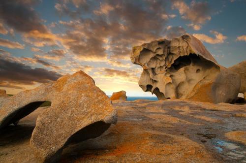 Kangaroo Island lies off the mainland of South Australia, southwest of Adelaide. Over a third of the island is protected in nature reserves, home to native wildlife like sea lions, koalas and diverse bird species. In the west, Flinders Chase National Park is known for penguin colonies and striking coastal rock formations, like the sculpted Remarkable Rocks and the stalactite-covered Admirals Arch.