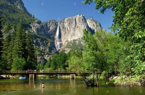 Yosemite National Park is an American national park located in the western Sierra Nevada of Central California, bounded on the southeast by Sierra National Forest and on the northwest by Stanislaus National Forest. The park, which is managed by the National Park Service, covers an area of 747,956 acres (1,168.681 sq mi; 302,687 ha; 3,026.87 km2)and sits in four counties: centered in Tuolumne and Mariposa, extending north and east to Mono and south to Madera County. Designated a World Heritage site in 1984, Yosemite is internationally recognized for its granite cliffs, waterfalls, clear streams, giant sequoia groves, lakes, mountains, meadows, glaciers, and biological diversity. Almost 95% of the park is designated wilderness