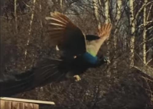 I had no idea peacocks flew, I thought they were flightless.