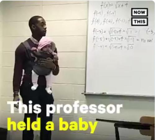 This professor volunteered to hold his student’s baby so that the dad could concentrate on taking notes.