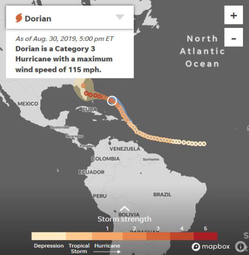 Hurricane warnings were put in place in the northwestern Bahamas as Dorian approached the island nation. A direct hit in the Bahamas is likely on Sunday into Monday.