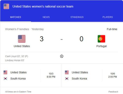 Lloyd tucked in the game’s first goal in the 22nd minute after a wild scramble in front of the net that was set off by a Julie Ertz cross that was partially cleared and then mishit back into danger by a Portugal defender. Lloyd’s initial attempt to convert the misplayed ball was bravely saved by Portugal goalkeeper Ines Pereira before falling for Jessica McDonald to have a go but her attempt was also thwarted by Pereira. The lose ball then fell to Lloyd who made no mistake from close range to make it 1-0.