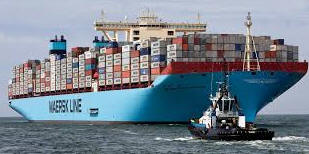 The Emma Maersk, part of a Danish shipping line, is shown in the photos above