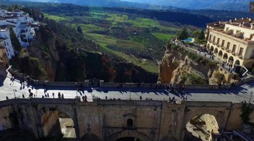 The Puente Nuevo is the newest and largest of three bridges that span the 120-meter-deep chasm that carries the Guadalevín River and divides the city of Ronda, in southern Spain. The architect was José Martin de Aldehuela, who died in Málaga in 1802. The chief builder was Juan Antonio, Díaz Machuca.