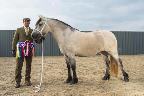 A pony is a small horse (Equus ferus caballus). Depending on the context, a pony may be a horse that is under an approximate or exact height at the withers or a small horse with a specific conformation and temperament. A pony is typically under the height of 14.2 hands high. There are many different breeds. Compared to other horses, ponies often exhibit thick manes, tails, and overall coat, as well as proportionally shorter legs, wider barrels, heavier bone, thicker necks, and shorter heads with broader foreheads. The word pony derives from the old French poulenet, meaning foal, a young, immature horse, but this is not the modern meaning; unlike a horse foal, a pony remains small when fully grown. On occasion, people who are unfamiliar with horses may confuse an adult pony with a foal.