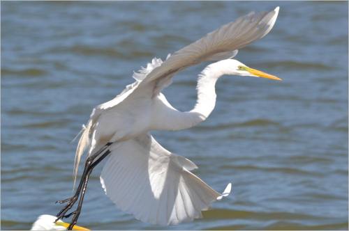 The great egret, also known as the common egret, large egret, or (in the Old World) great white egret or great white heron is a large, widely distributed egret, with four subspecies found in Asia, Africa, the Americas, and southern Europe. Distributed across most of the tropical and warmer temperate regions of the world, it builds tree nests in colonies close to water.