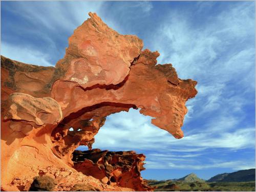 The monument consists of 296,937 acres (120,166 ha). The Gold Butte National Monument fills a gap between Lake Mead National Recreation Area and Grand Canyon-Parashant National Monument, creating a continuous swath of conserved land and establishing a wildlife corridor. Significant wildlife within the borders of the park includes Mojave Desert tortoise (a threatened species), bighorn sheep, and mountain lion, as well as Gambel’s quail and chukar partridge. Important cultural and natural resources within the monument include rock art and sandstone formations. Within the park, “weather-chiseled red sandstone is incised with ancient rock art, and the remains of rock shelters and hearths, agave roasting pits and projectile points” may be found. Wikipedia