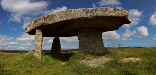 A dolmen is a type of single-chamber megalithic tomb, usually consisting of two or more vertical megaliths supporting a large flat horizontal capstone or “table”. Most date from the early Neolithic (4000–3000 BC) and were sometimes covered with earth or smaller stones to form a tumulus. Small pad stones may be wedged between the cap and supporting stones to achieve a level appearance. In many instances, the covering has weathered away, leaving only the stone “skeleton” of the mound intact.
