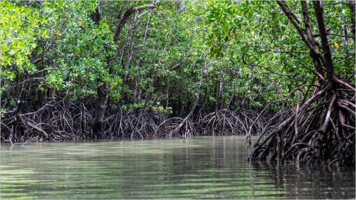 The mangrove biome, or mangal, is a distinct saline woodland or shrubland habitat characterized by depositional coastal environments, where fine sediments (often with high organic content) collect in areas protected from high-energy wave action. The saline conditions tolerated by various mangrove species range from brackish water, through pure seawater (3 to 4% salinity), to water concentrated by evaporation to over twice the salinity of ocean seawater (up to 9% salinity). Wikipedia