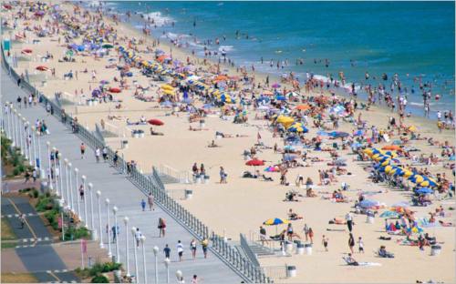 Virginia Beach is a resort city with miles of beaches and hundreds of hotels, motels, and restaurants along its oceanfront. Every year the city hosts the East Coast Surfing Championships as well as the North American Sand Soccer Championship, a beach soccer tournament. It is also home to several state parks, several long-protected beach areas, military bases, a number of large corporations, Virginia Wesleyan University and Regent University, the international headquarters and site of the television broadcast studios for Pat Robertson’s Christian Broadcasting Network (CBN), Edgar Cayce’s Association for Research and Enlightenment, and numerous historic sites. Near the point where the Chesapeake Bay and the Atlantic Ocean meet, Cape Henry was the site of the first landing of the English colonists, who eventually settled in Jamestown, on April 26, 1607.