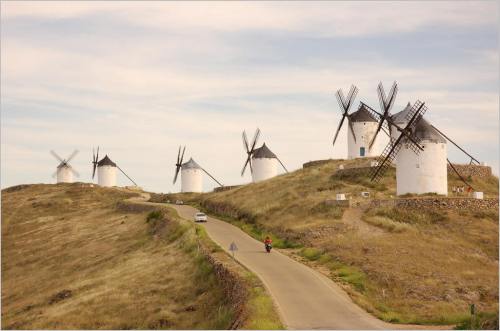 Consuegra windmills In the region of La Mancha, on the top of the hill Calderico, you can find one of the most impressive images of Spain, twelve windmills surround a huge fortress making an astonished icon in your mind. History, culture, and fiction comes together here. Welcome to Consuegra Consuegra windmills There is no feeling like driving your car on the highway with your sunglasses on while you breathing the pure air and suddenly, the landscape changes. The great flat land, the endless skyline where soil and sky connected appears in front of you, and in the distance twelve windmills and a huge castle on the top of a hill crowning the plain. You are arriving at the heart of Spain, you are in Consuegra It is Consuegra a town with a large history which goes back thousands of years. It is a place where you can relive the history and the tradition, understand not only the Spanish history but the human history too