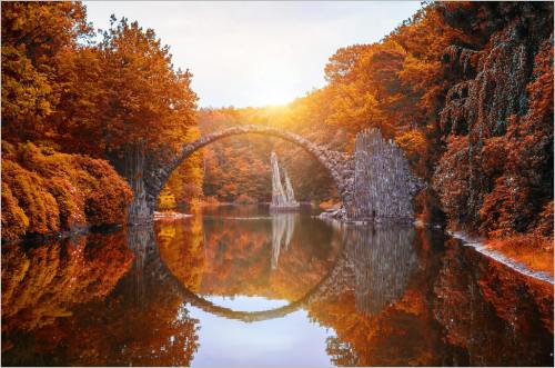 An image of the Arch Bridge (Rakotzbrucke or Devils Bridge) in Kromlau, Germany