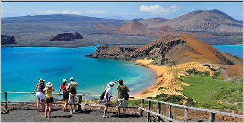 It has two visitor sites. At the first one, one may swim and snorkel around Pinnacle Rock; the underwater world there is really impressive. Snorkelers are in the water with the penguins, marine turtles, white-tipped reef sharks, and other tropical fish. The bay is also an excellent place to go swimming. The twin bays are separated by a narrow isthmus.