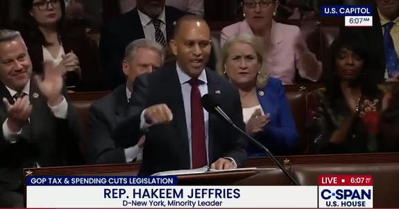 Jeffries has already spoken for more than four hours, lambasting the opposition for betraying “everyday Americans” by slashing Medicaid and miring the country in debt, calling the bill an “immoral document.”
