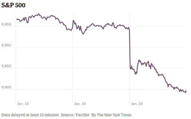 Tuesday’s trading was the first chance U.S. markets had to react to Mr. Trump’s escalating threats toward Europe over the weekend with the U.S. stock market closed on Monday in honor of Martin Luther King’s Birthday.