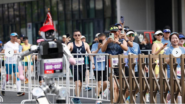 While it will still take time to achieve widespread commercialization of humanoid robots, spectators were already impressed by the robots. Sun Zhigang, who had been in the audience last year, watched Sunday’s race with his son.