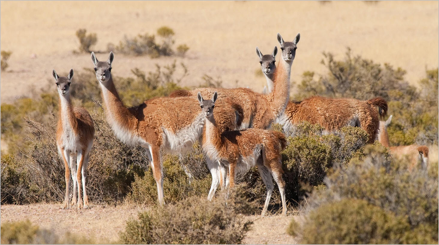 The guanaco (Lama guanicoe) is a camelid native to South America, closely related to the llama. Its name comes from the Quechua word huanaco (modern spelling wanaku). Young guanacos are called chulengos. Guanacos are one of two wild South American camelids, the other being the Vicuña, which lives at higher elevations.
