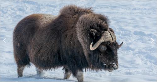 The muskox also spelled musk ox and musk-ox, plural muskoxen or musk oxen, is a hoofed mammal of the family Bovidae. Native to the Arctic, it is noted for its thick coat and for the strong odor emitted by males during the seasonal rut, from which its name derives. This musky odor has the effect of attracting females during mating season. Its Inuktitut name “umingmak” translates to “the bearded one”. Its Woods Cree names “mâthi-môs” and “mâthi-mostos” translate to “ugly moose” and “ugly bison”, respectively. Muskoxen primarily live in Greenland and the Canadian Arctic of the Northwest Territories and Nunavut, with reintroduced populations in the American state of Alaska, the Canadian territory of Yukon, and Siberia, and an introduced population in Norway, part of which emigrated to Sweden, where a small population now lives.