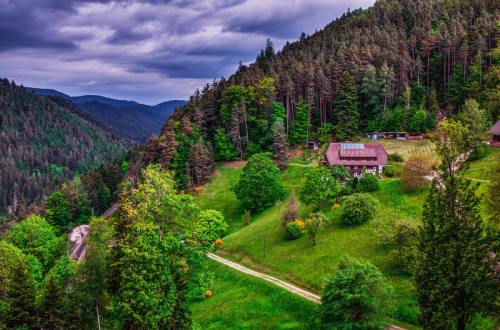 The Black Forest is a mountainous region in southwest Germany, bordering France. Known for its dense, evergreen forests and picturesque villages, it is often associated with the Brothers Grimm fairy tales. It’s renowned for its spas and the cuckoo clocks produced in the region since the 1700s. The region’s largest town, Freiburg, is filled with Gothic buildings and surrounded by vineyards.