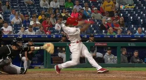 Sean Rodriguez lined a home run leading off the bottom of the 11th inning to give the Philadelphia Phillies a 6-5 victory over the Pittsburgh Pirates on Monday night.
